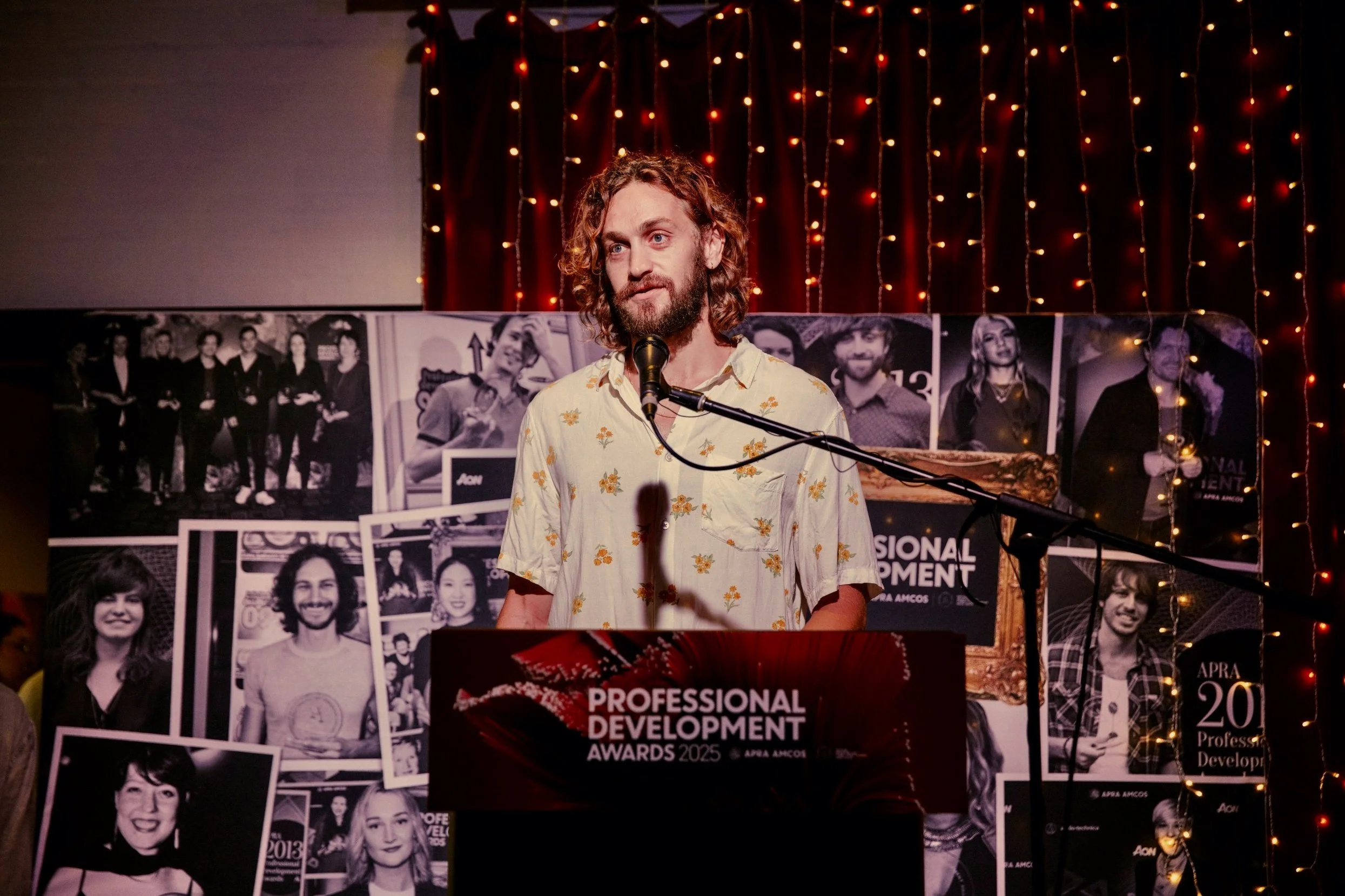Sam is a dedicated lifelong student and innovative music creator with a diverse and compelling background. Based in Sydney, he currently operates as a freelance composer and specialises in crafting music for broadcast television, film, documentaries and video games. Sam won the APRA AMCOS Professional Development Award in Screen Music in 2025. In 2024, Sam was nominated for an APRA Screen Music Award in the Best Music for a Video Game category.